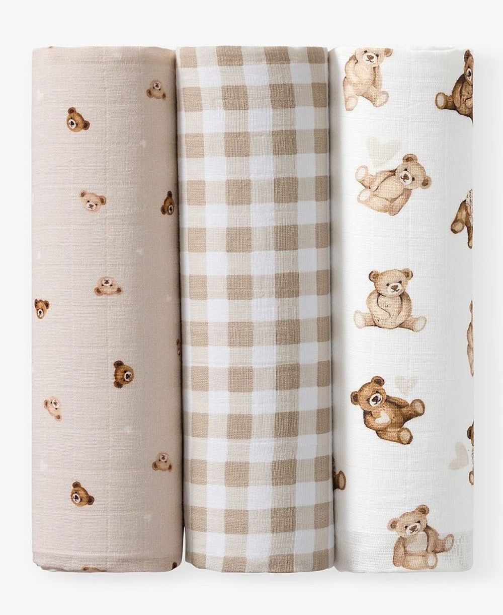 I love adorable muslin blankets for a nursery, and these soft, breathable blankets are perfect for swaddling. Sleep sacks are also a great option and can be safer than blankets.