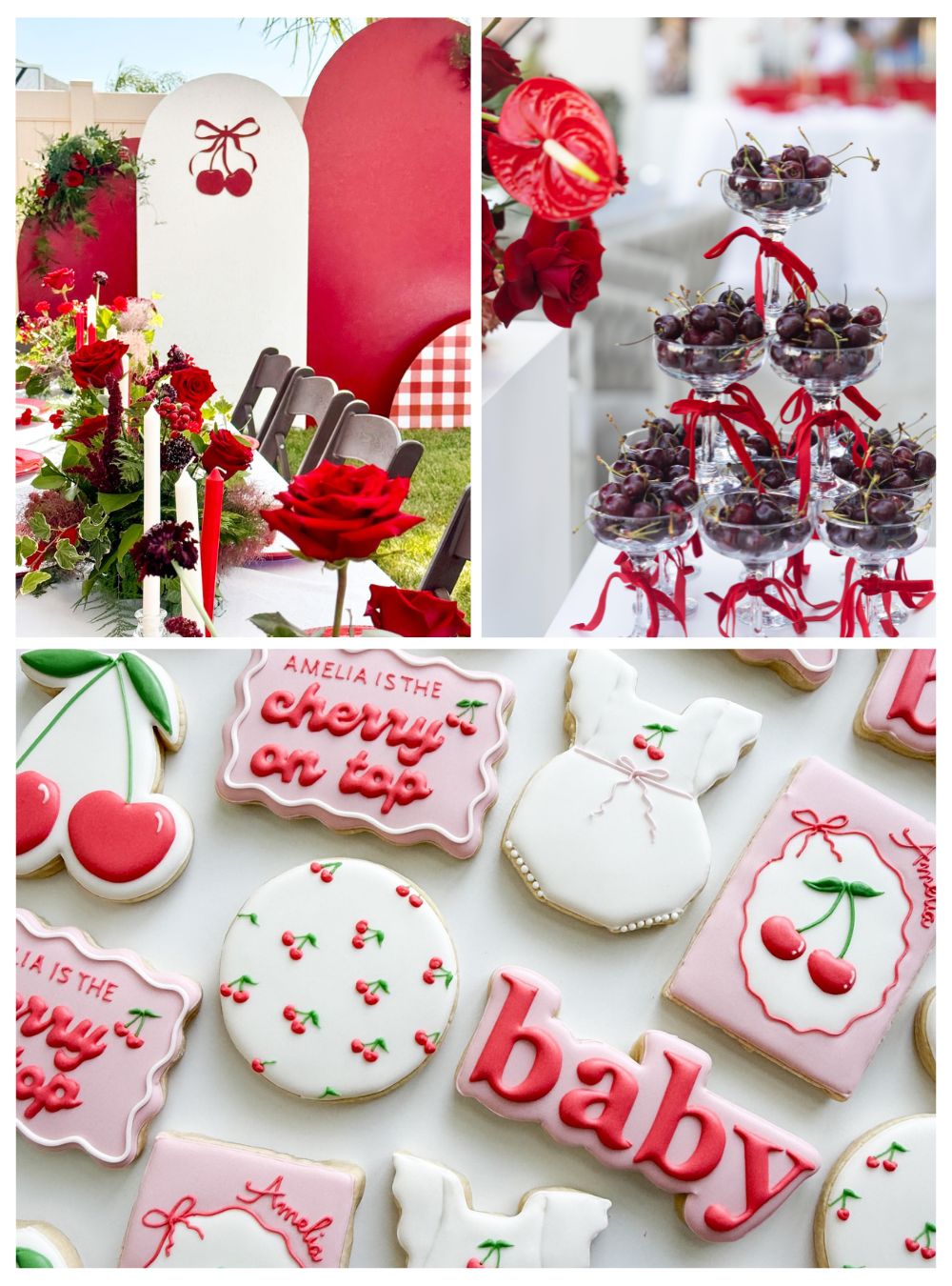 Serve cherry-topped cheesecake bites, cherry almond pastries, cherry mocktails, and fresh cherries (of course) for this. For colors, opt for reds, pinks, and white, mixing and matching shades to your preference.