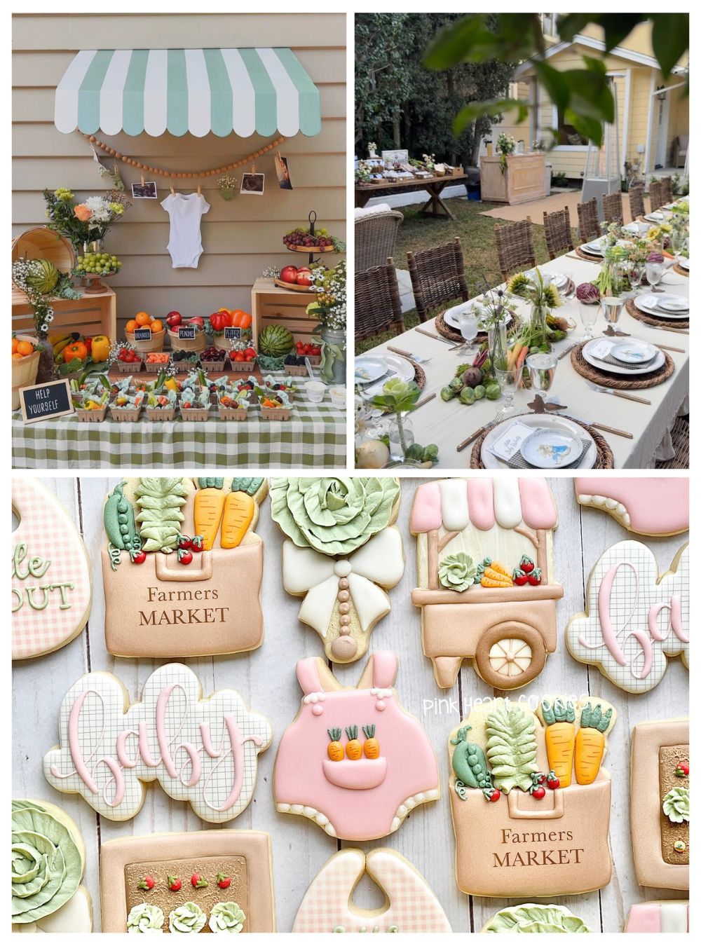 Serve fresh salads, cucumber bites, and fruit skewers for easy-to-eat foods, and offer herb-infused lemonade for a special touch. For decor, feature terra cotta pots, greenery, wooden elements, and fresh produce.