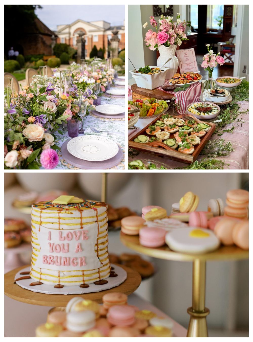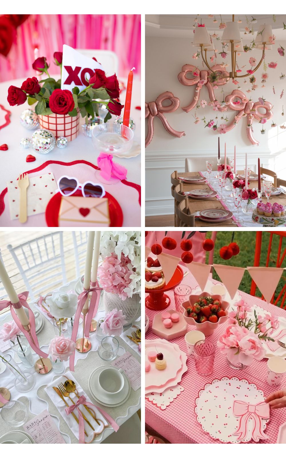 Set up a waffle or pancake bar with berries, whipped cream, chocolate chips, and heart-shaped sprinkles. Prepare fruit kebabs with heart-shaped fruits and serve pink mimosas (or mocktails!) Decor can be soft and airy with pastel florals and pops of gold for an elevated finish.
