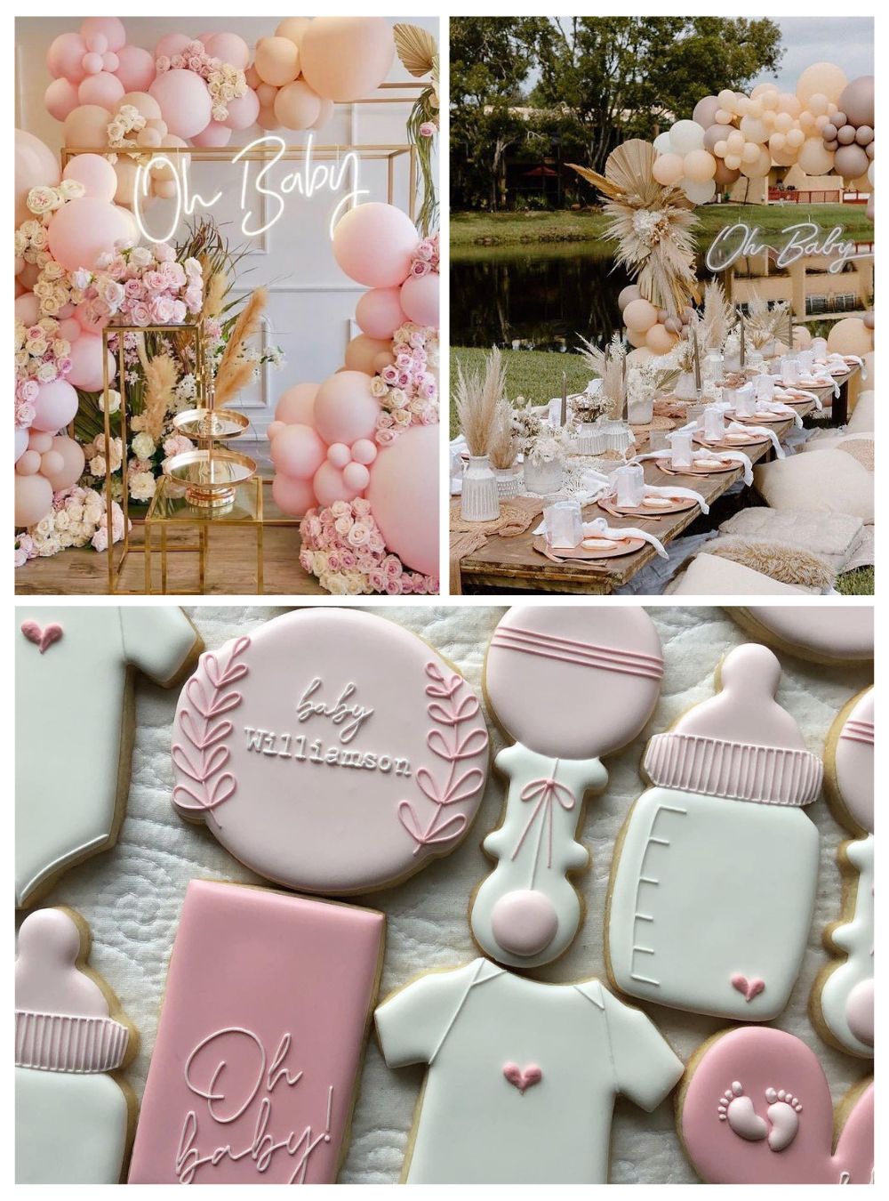 A classic boho baby shower with a V-Day twist, this Oh Baby theme is warm and serene. Muted tones and earthy accents are ideal here, and pops of gold add a classy touch.