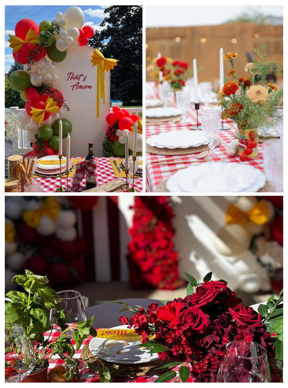 Of course, cherry foods (mini cherry cheesecakes, cherry yogurt parfaits, fresh cherries, and cherry lemonade) are a must, and cherry motifs will set the space up perfectly for an Instagram-worthy event!