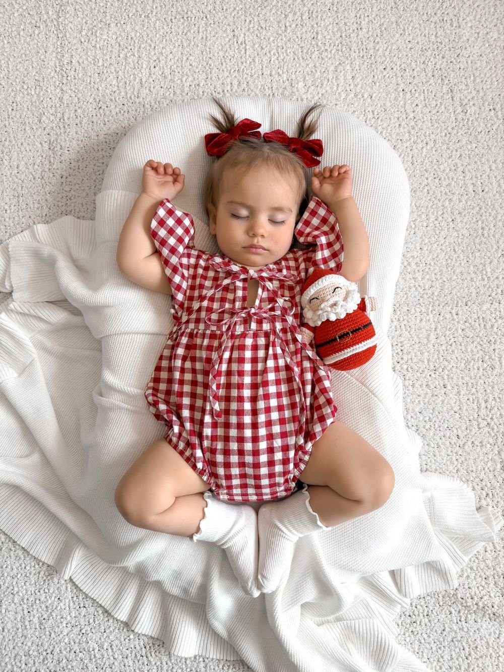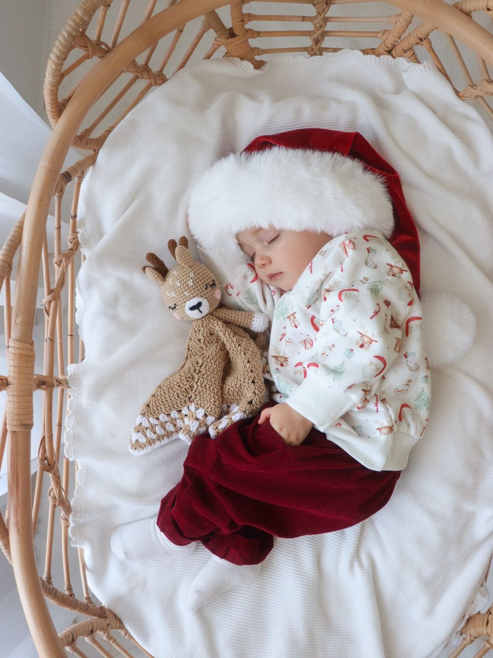 Every baby needs a holiday-themed stuffie for their first Christmas baby photos! This adorable blanket and stuffed animal combo can be a prop that you add to your Christmas photos for years to come.
