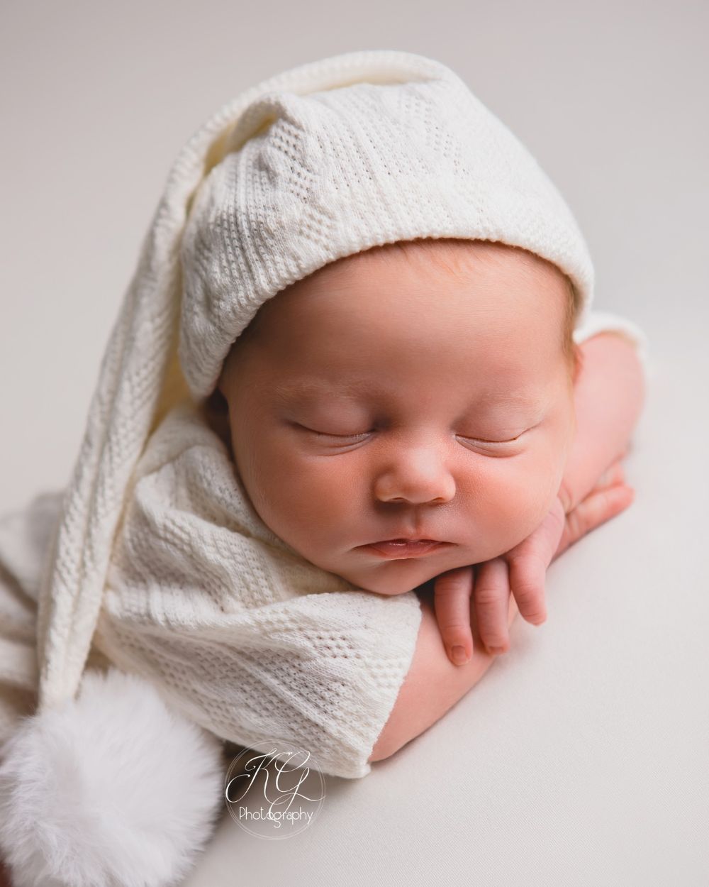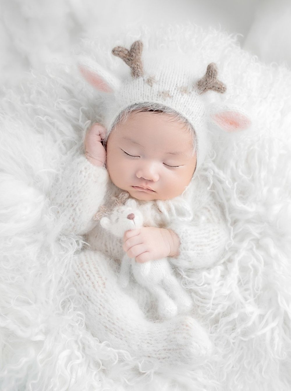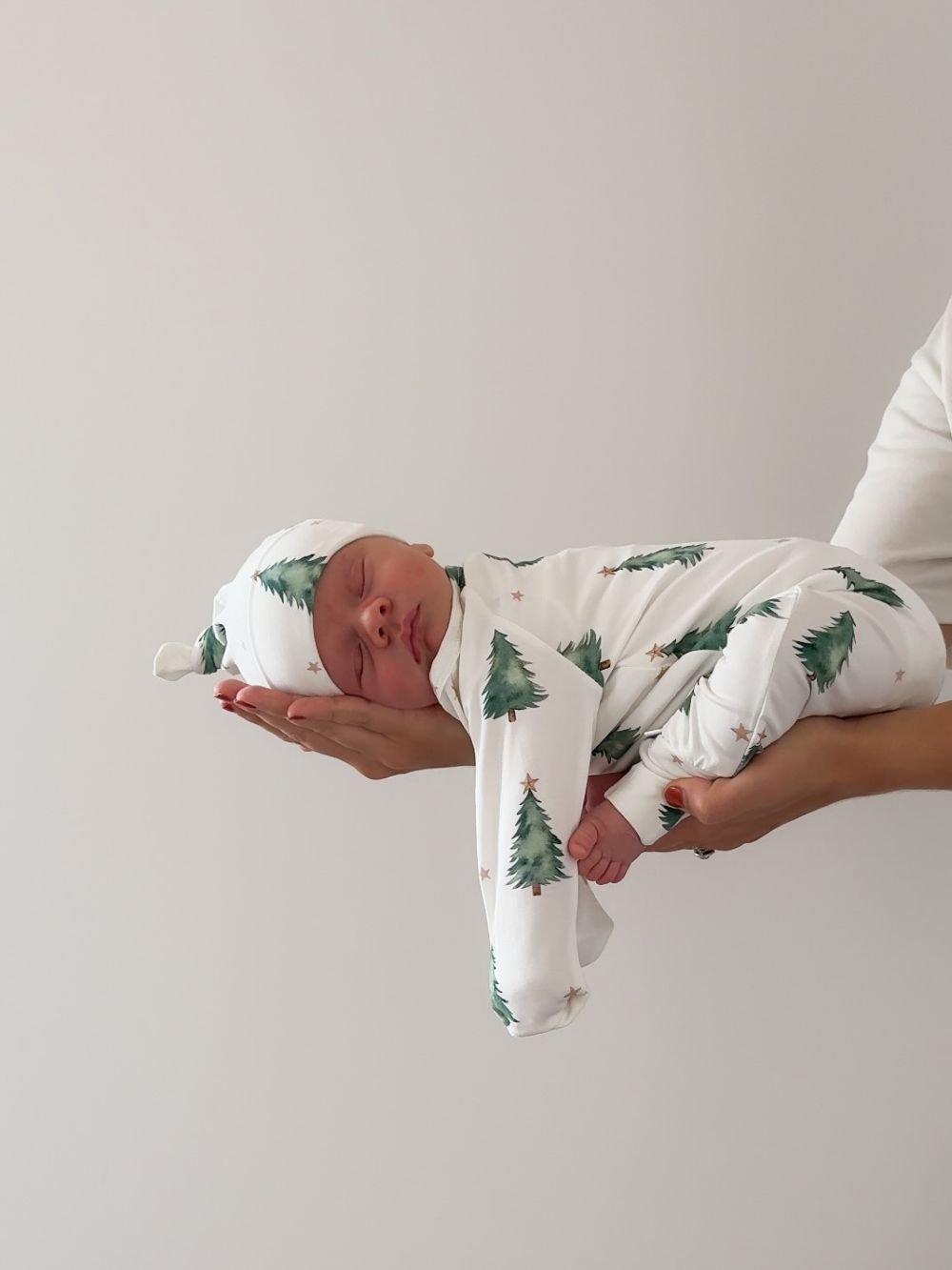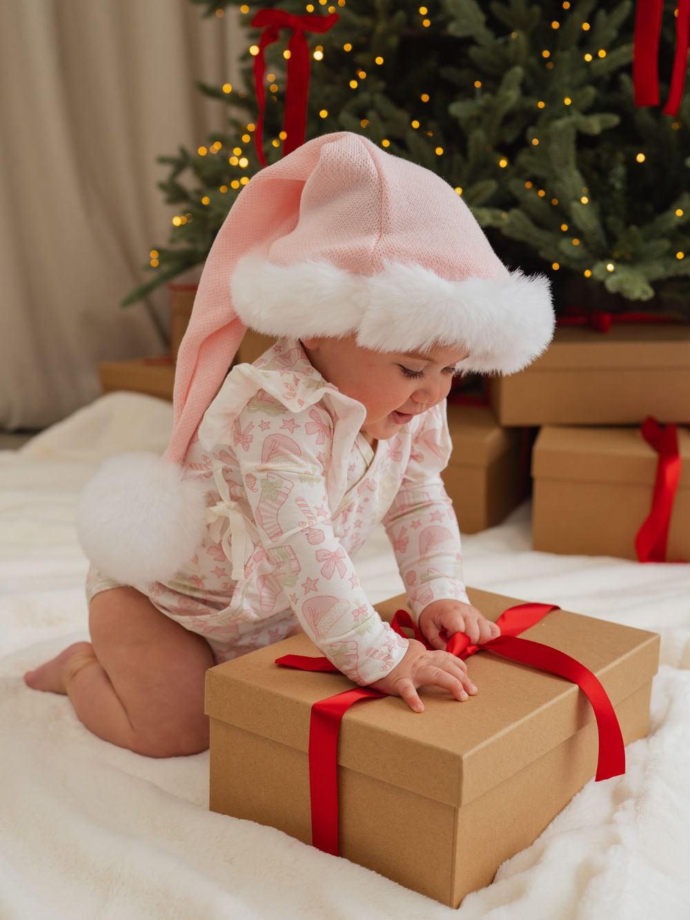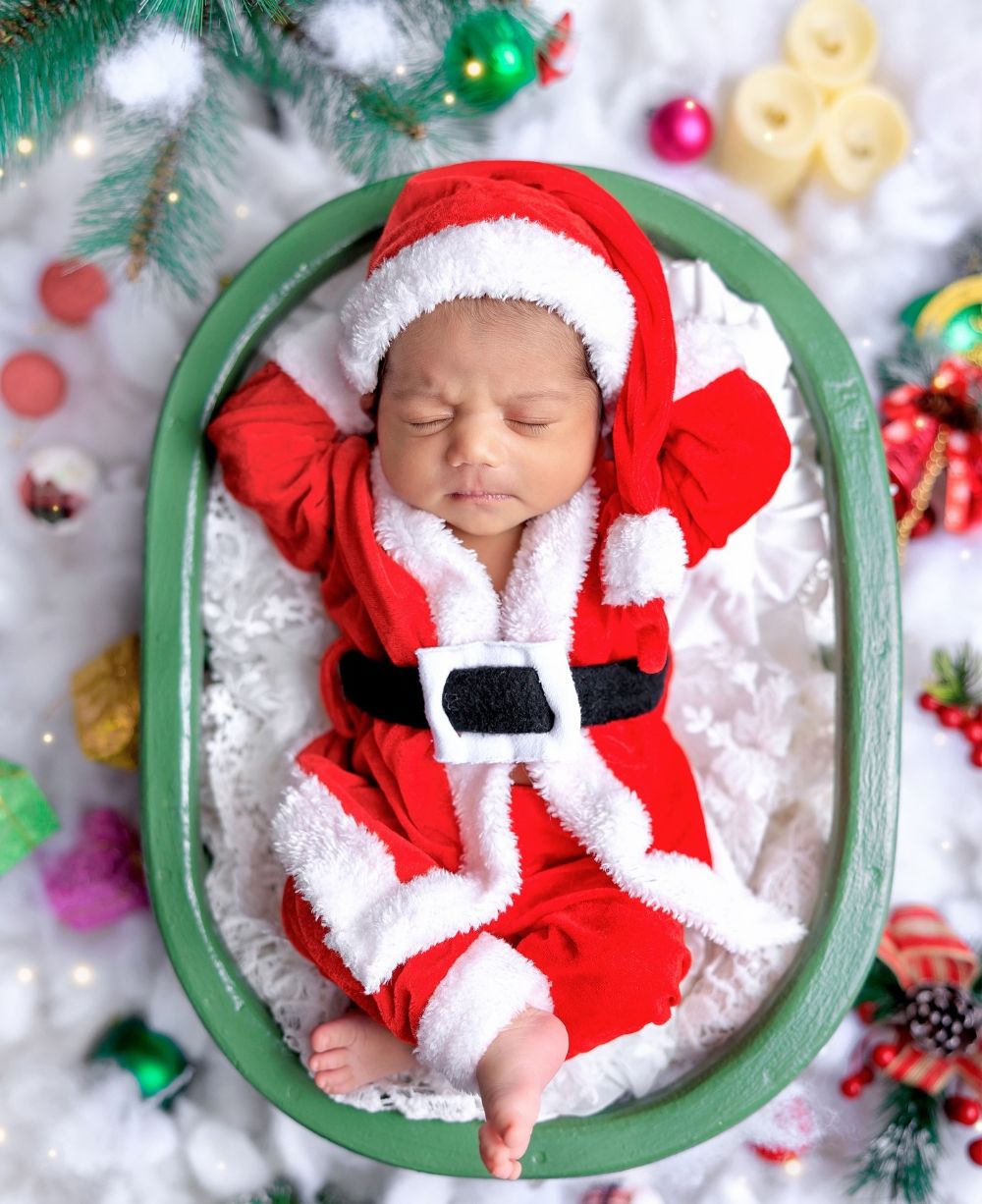 Dress your newborn in a Christmas or winter-inspired onesie and hat for serene, seasonal photos that document the first Christmas!