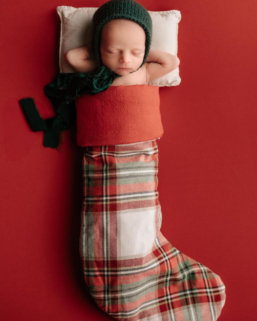 A sweet and simple stocking photo is another great option for a newborn Christmas photo, especially since a new bundle of joy is the best Christmas gift anyone could ask for!