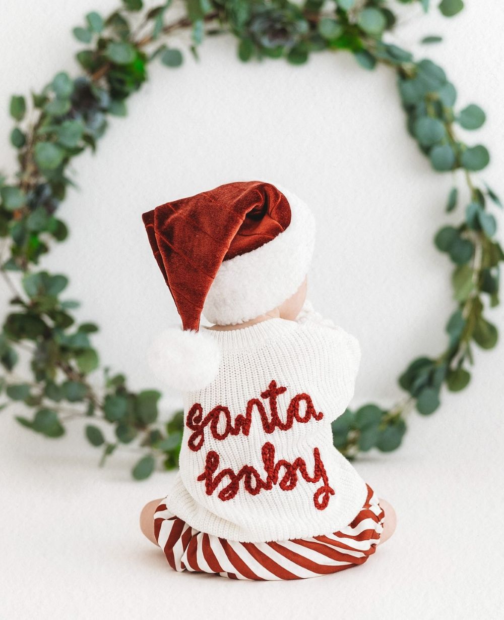Invest in a Santa Baby sweater for your little one and pair it with a velvety red Santa cap for the cutest holiday photo!