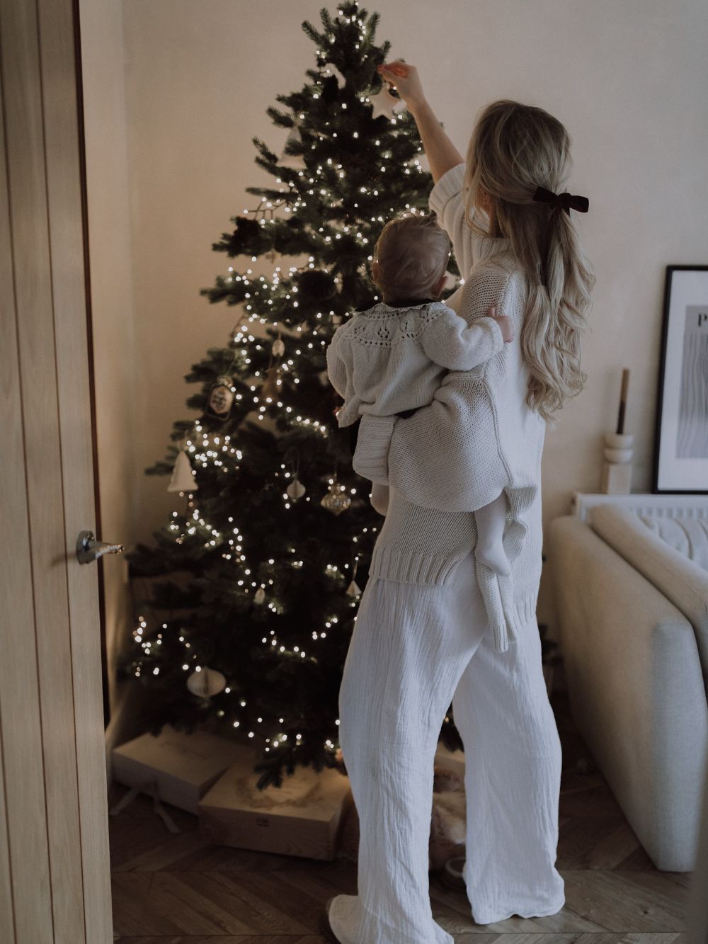 Snap a behind-the-scenes photo of you and your little one decorating the tree for your first Christmas together.