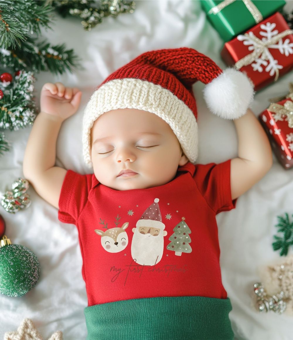 If your little one will be enjoying their first holiday season in 2025, explore the baby’s first Christmas photo ideas below to help capture this monumental moment in the cutest way possible!