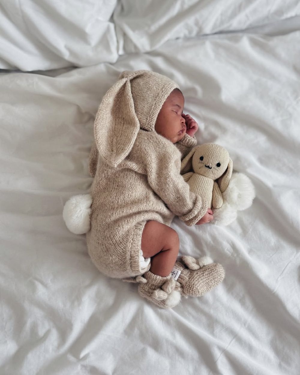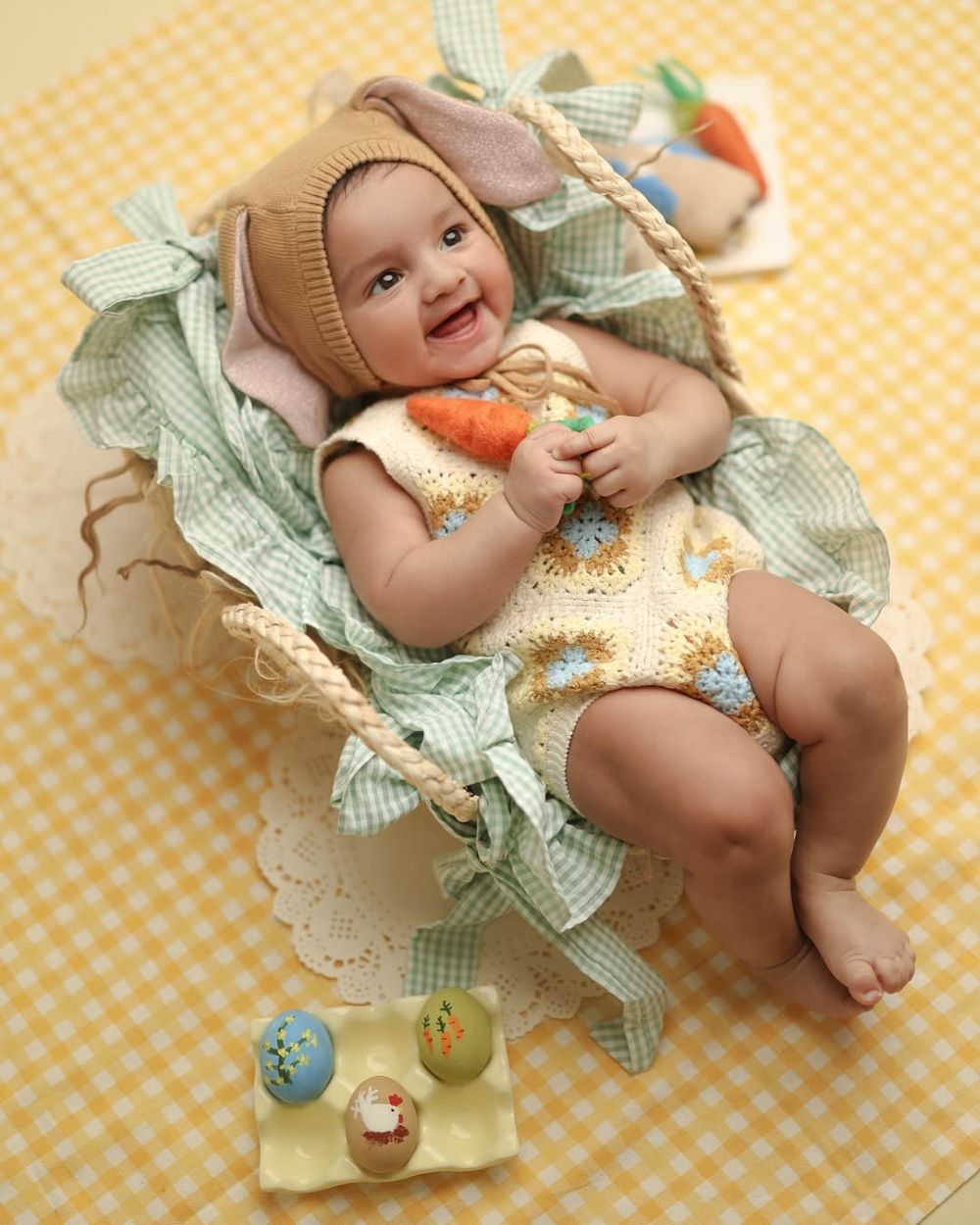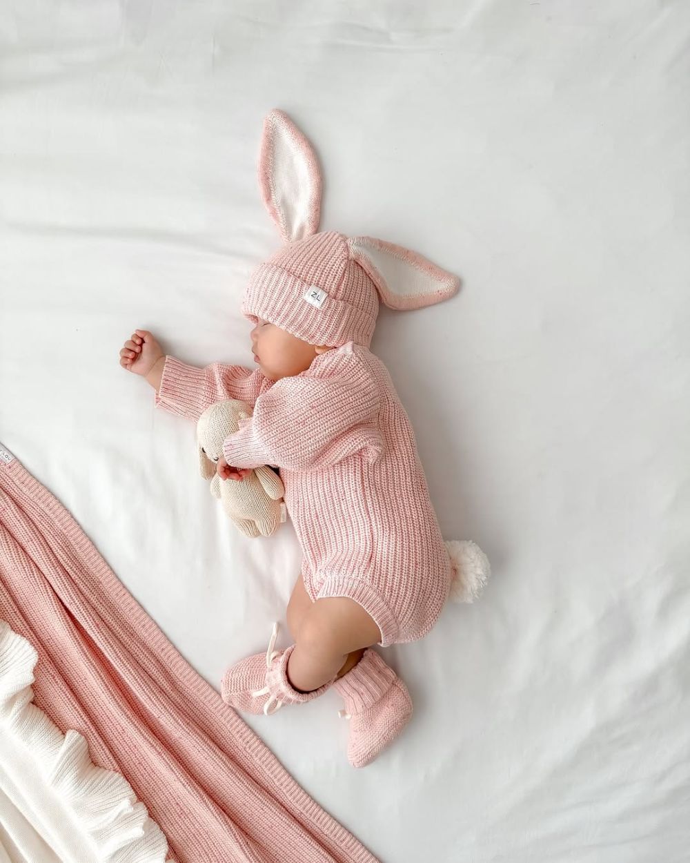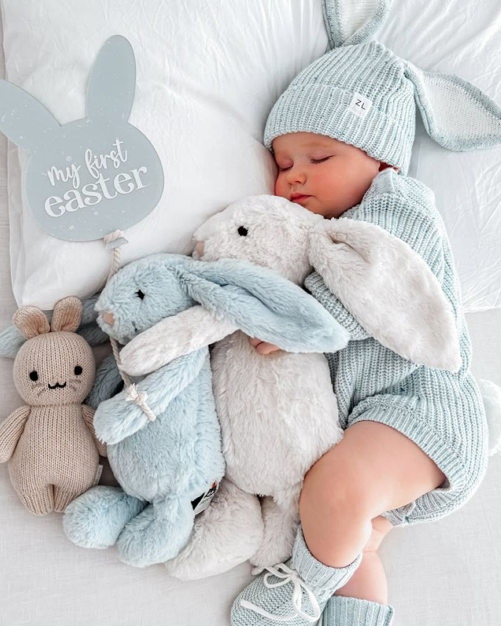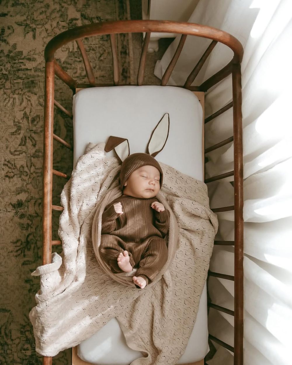 For newborns and young babies, you can go for a simple, overhead shot of your little bunny in their crib.