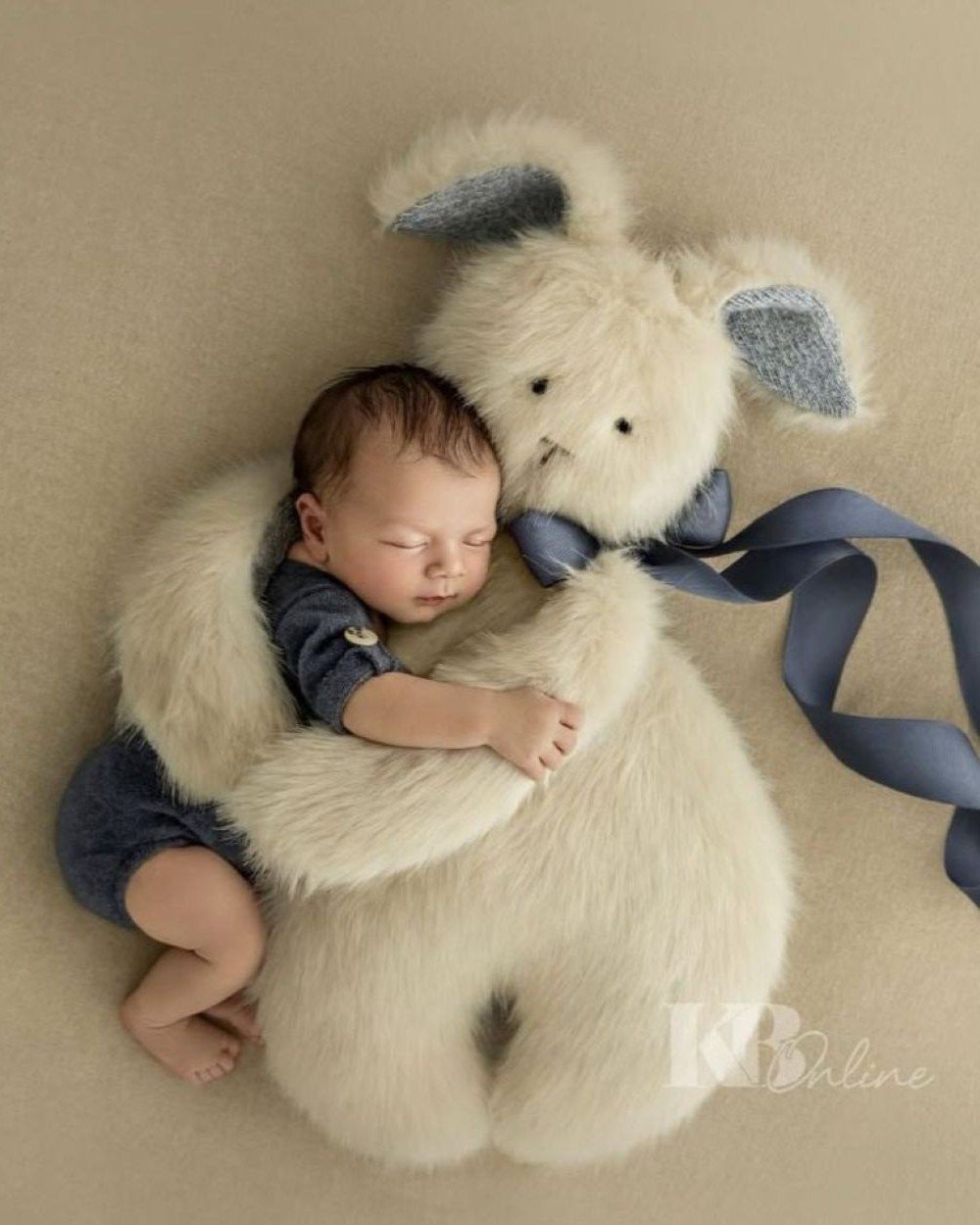 Photograph your baby cuddling with an oversized stuffed bunny for a cute and heart-warming holiday memory.