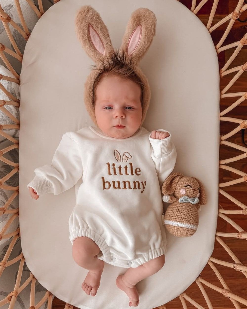 Order an adorable Little Bunny onesie and pair it with fluffy bunny ears for instantly adorable Easter baby photos. Plus, the onesie can be a family keepsake!