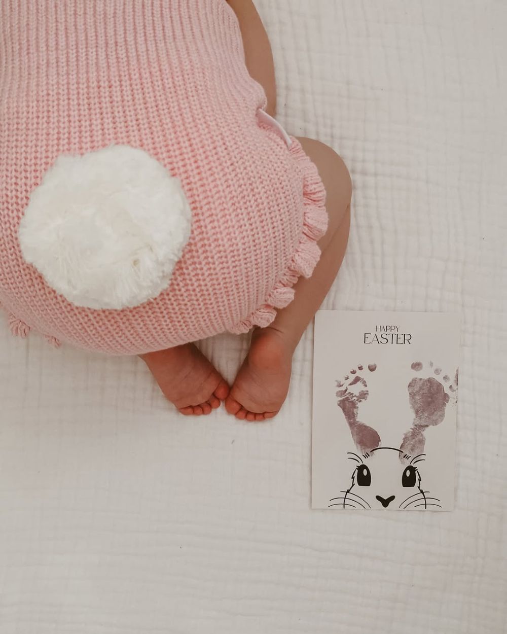 Snap a photo of your baby’s bunny tale with a print of their teeny tiny toes as a keepsake next to them.