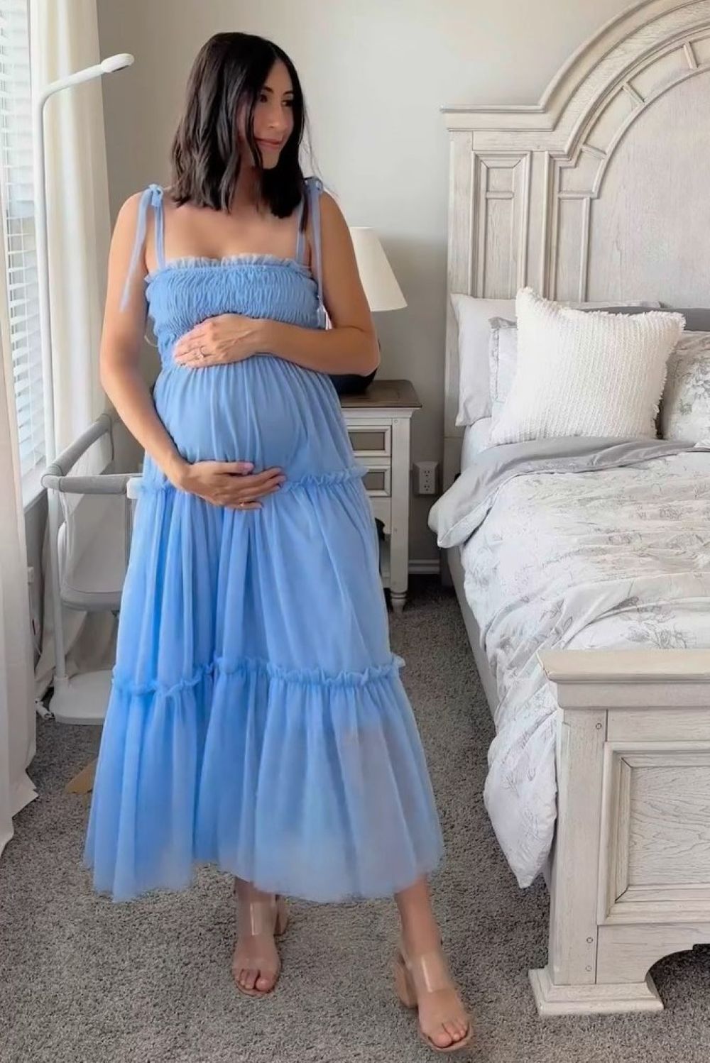 Tulle always looks elegant but still has a playful feel, making this perfect for a gender reveal party. Go for this dress in blue or pink to show off whether you think you’ll be having a boy or a girl!