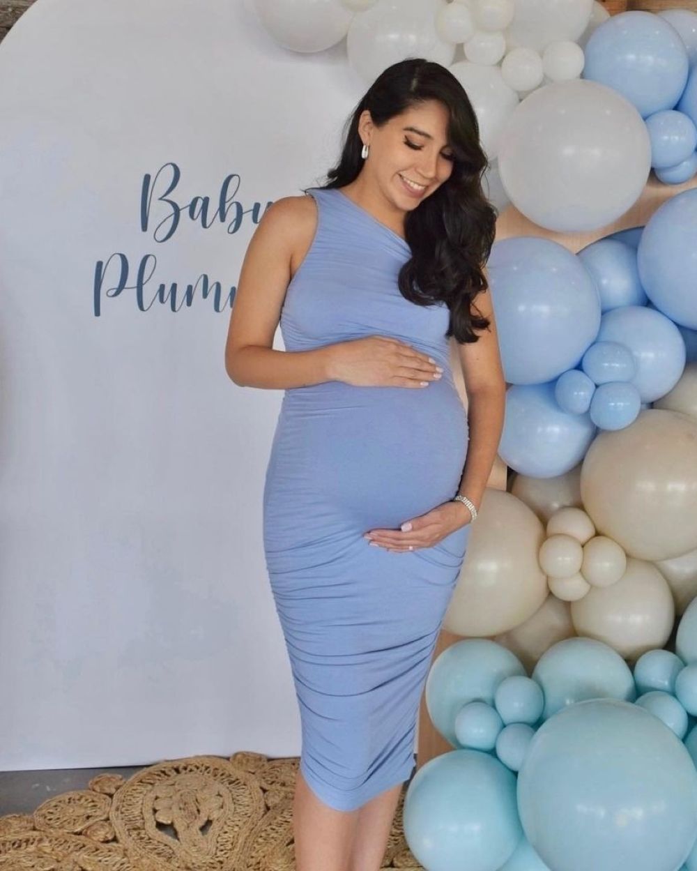 This dress has serious tropical vibes, making it ideal for an outdoor summer gender reveal party.