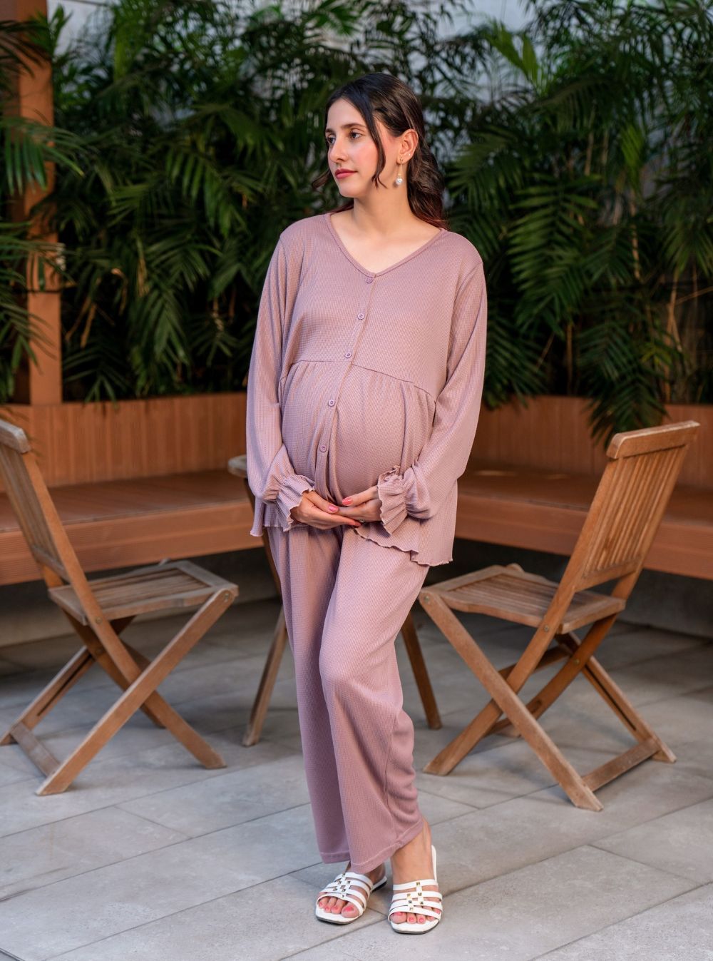 Opt for a dusty pink matching set for an unexpected yet chic choice for your gender reveal party. And you can easily dress this set up with the right accessories!