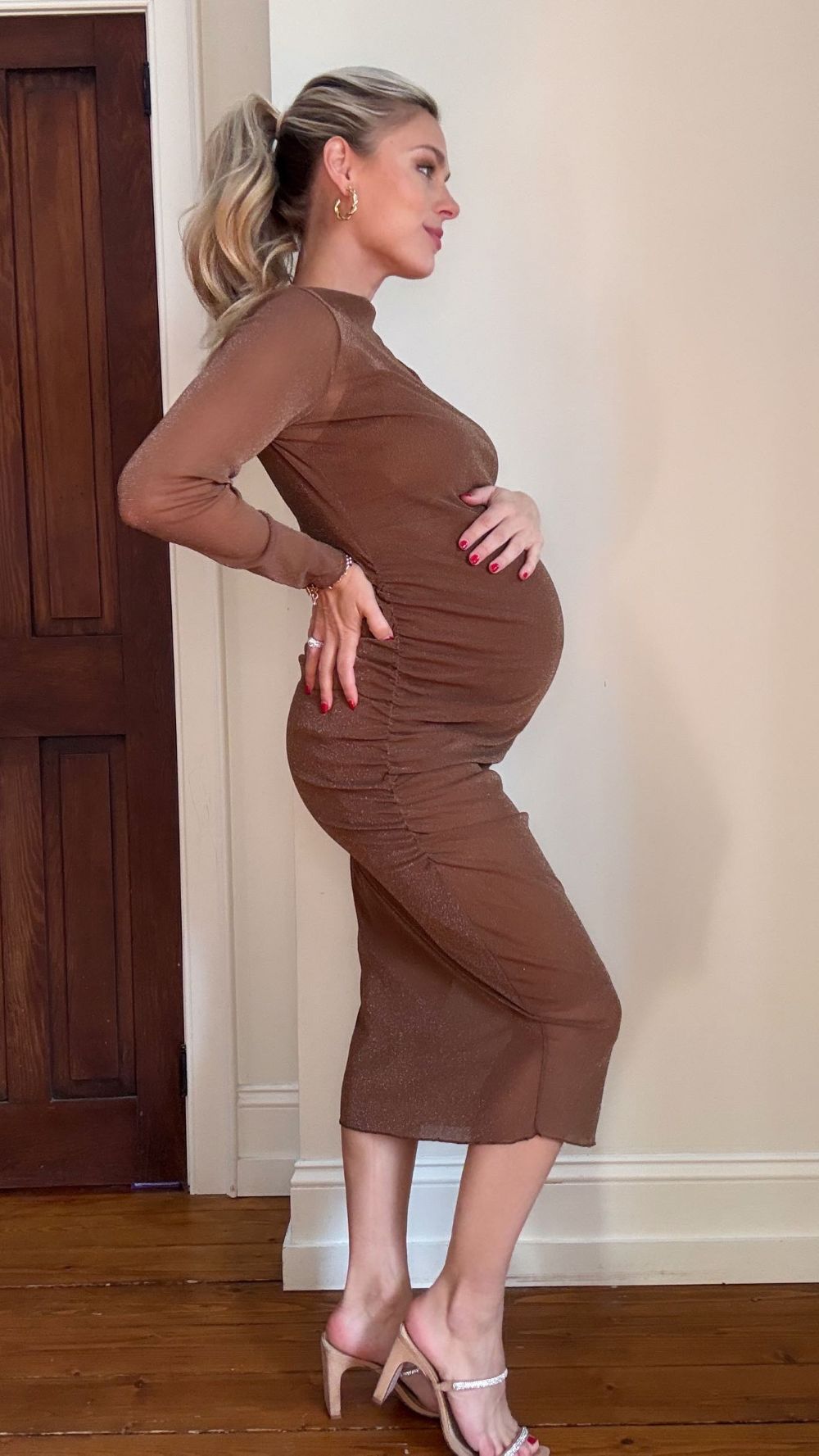 This dress is ideal for a fall gender reveal party and looks so elegant!