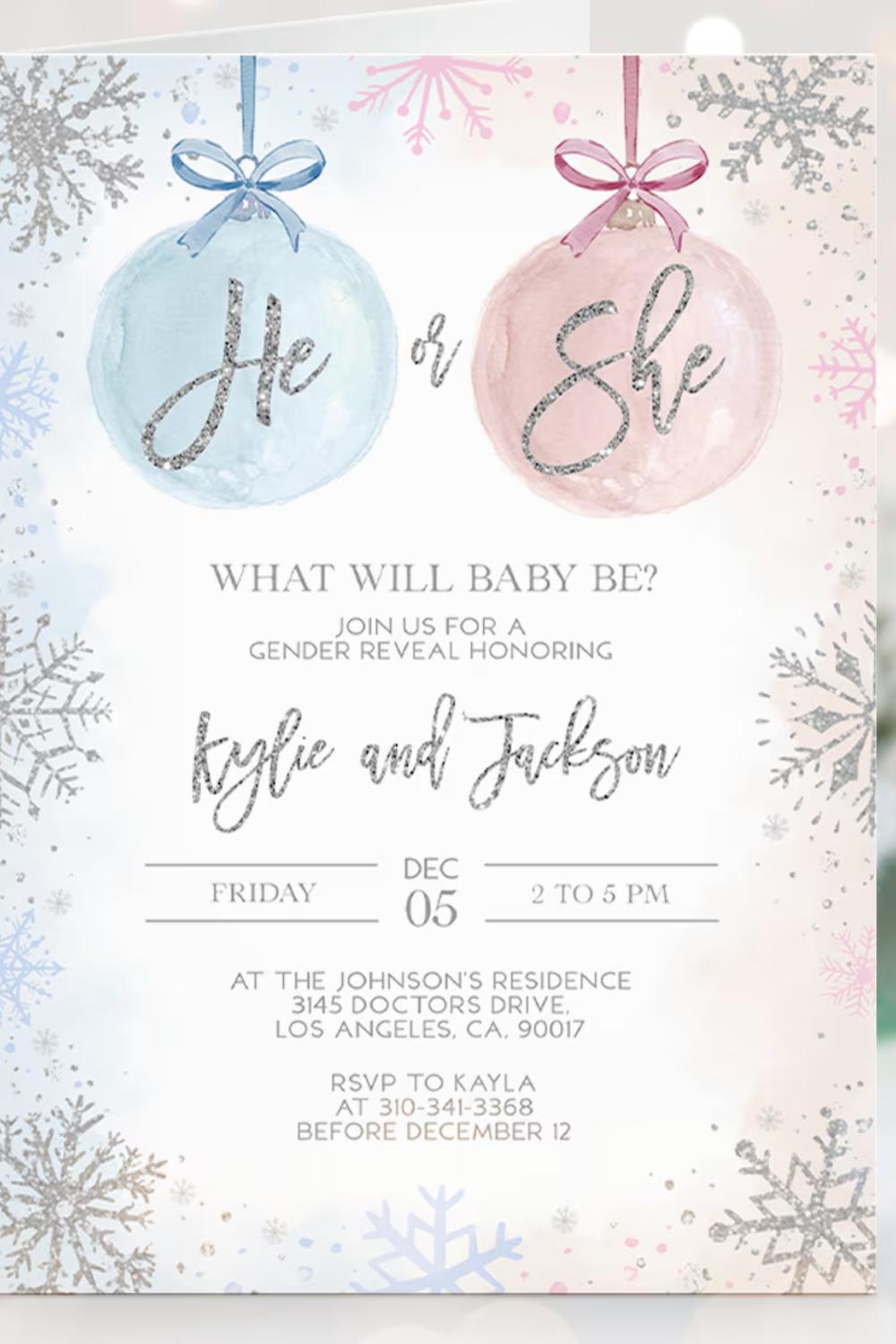 Perfect for December reveals! Use pink and blue ornaments on your tree, hang them from garlands, or set up an ornament-picking reveal moment for guests.