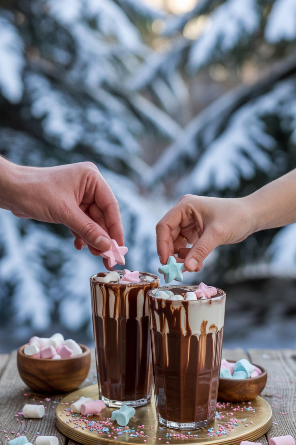 Hot cocoa balls filled with colored marshmallows or an edible, pigmented powder is such a cute idea for a winter gender reveal. Order white chocolate cocoa balls with pink and blue details for a traditional look.
